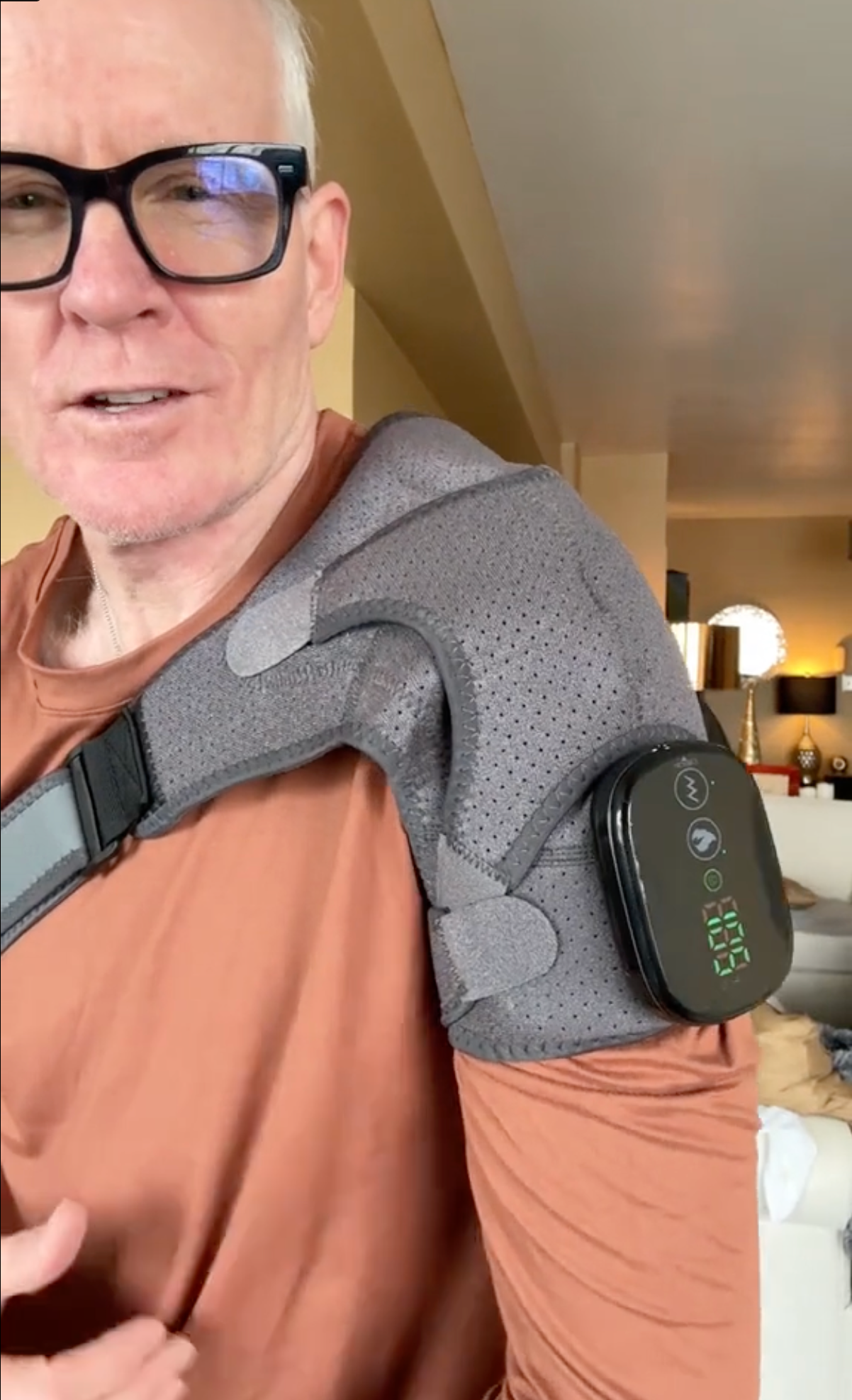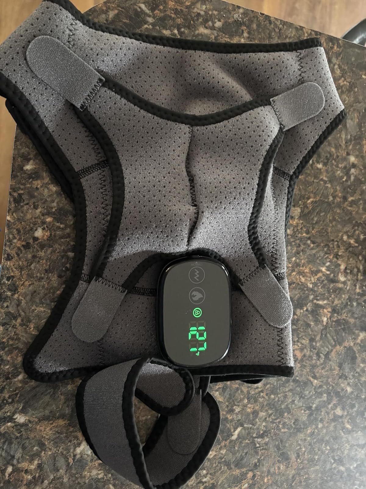 • 📐 Adjustable Shoulder Brace – Soft, stretchable straps conform to any shoulder size, keeping the massager firmly in place so you can move, stretch, or rest without it slipping.
